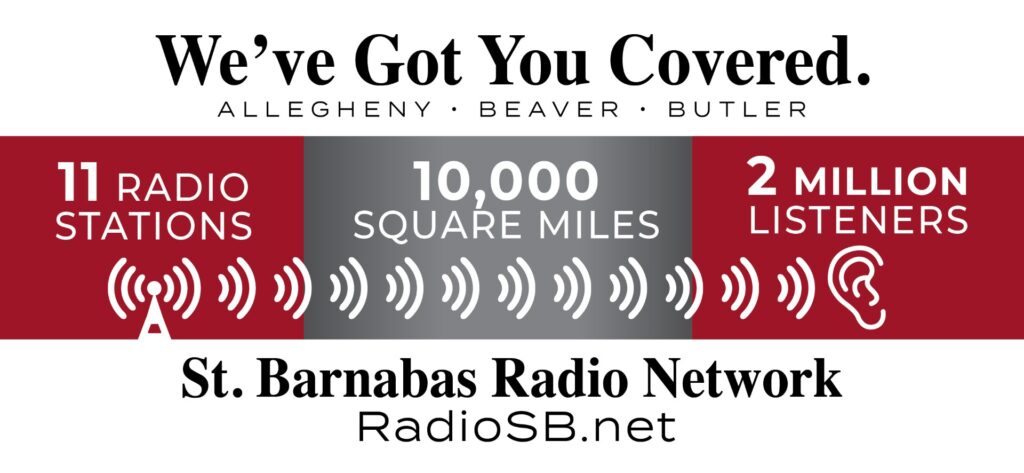 We reach 11 counties in Pennsylvania, Ohio and West Virginia! We have the listeners that want to hear from YOU! Don’t lose any sales...ADVERTISE on all St. Barnabas Radio Network Stations!